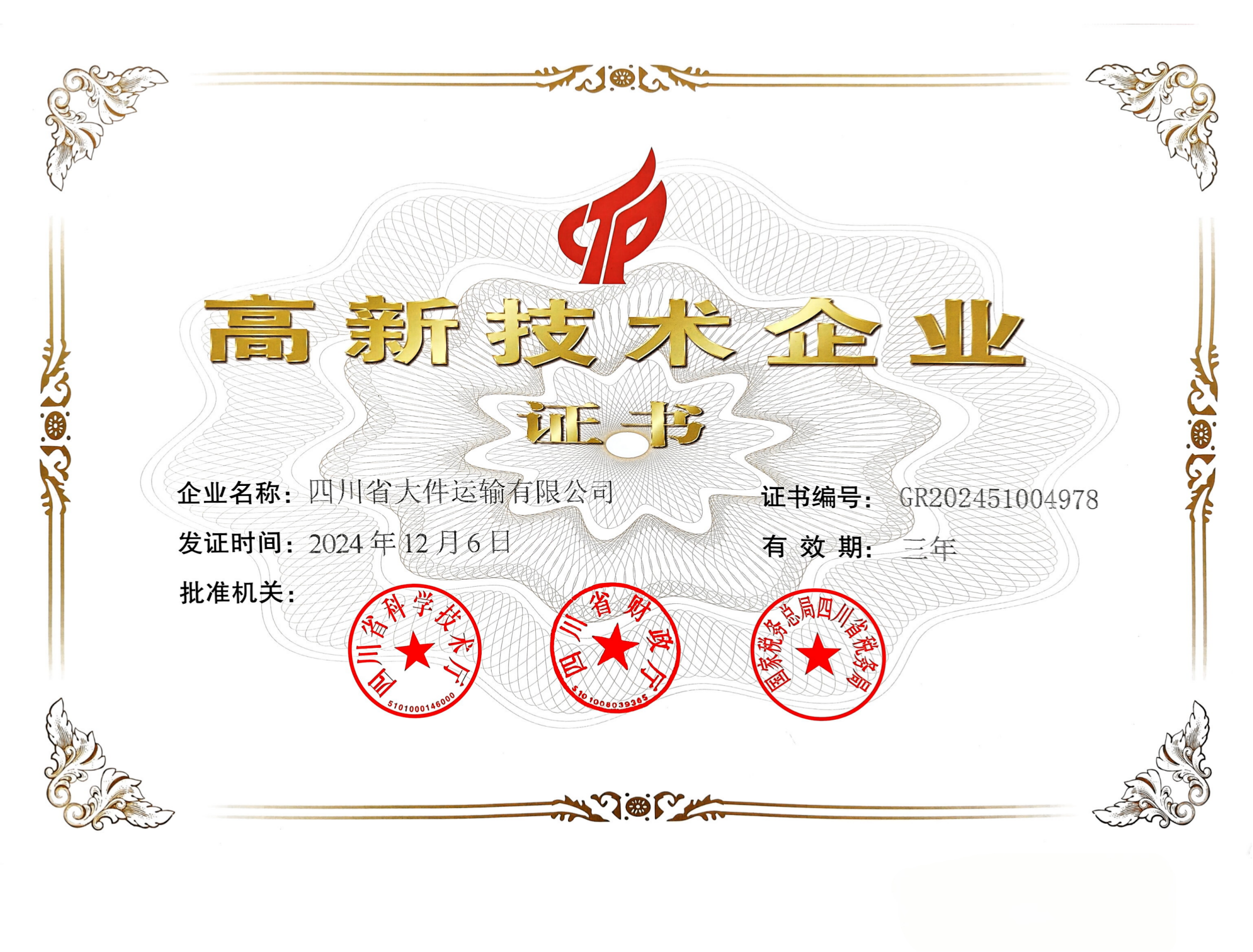 高新技术企业证书