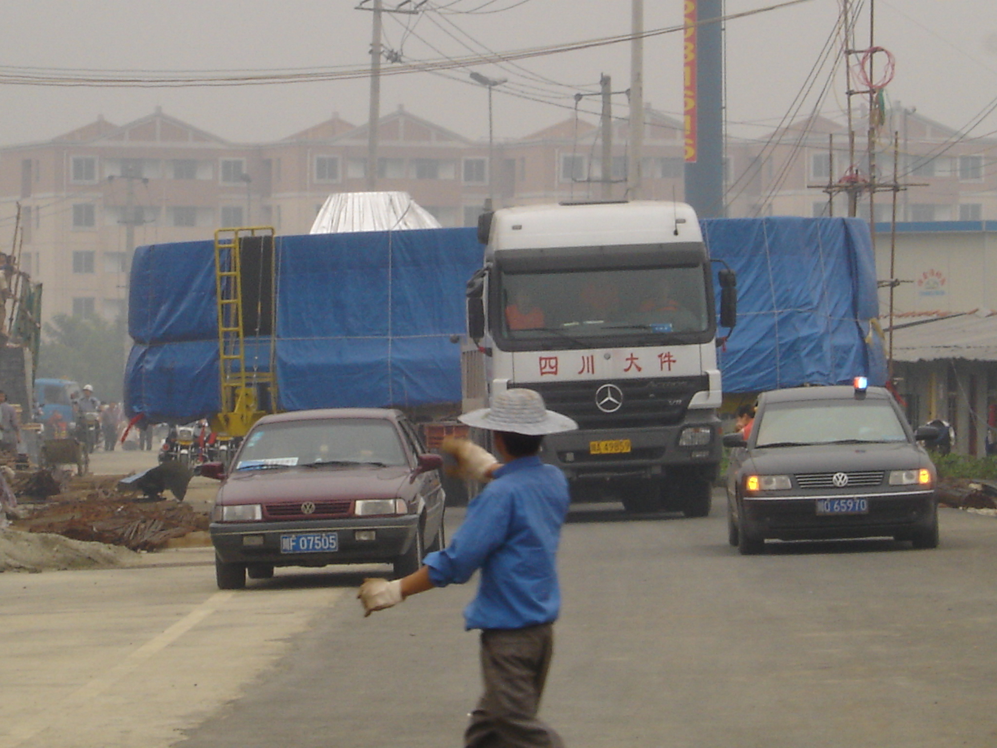 三峡水轮机转轮下环运输,重90吨,宽10.07米。