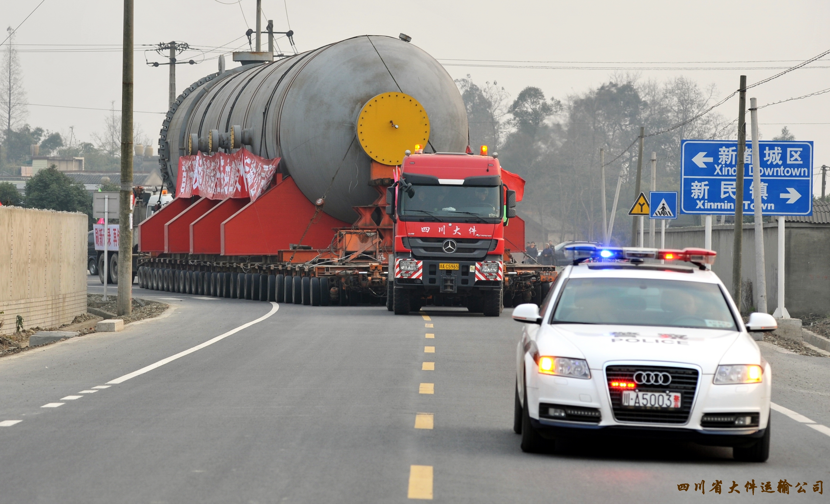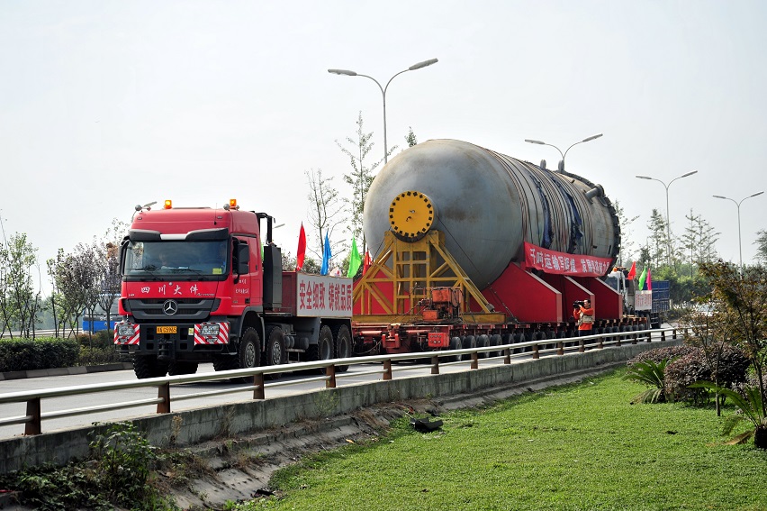 彭州石化运输项目不仅是公司历史上,同时也是四川大件运输史上的一次大事件。我司成功运输千吨级别的设备设施,无论是桥梁荷载试验还是码头吊装,无论是运输牵引还是协同配合,我司都表现出强大的凝聚力和执行力。这次大型设备设施的成功运输,又一次证明了我司是四川经济建设的急先锋,是大件道路运输领域的排头兵。千吨设备的顺利运输创造了多个运输之最,谱写了四川省千吨级大件运输的辉煌,刷新了我司创造的省大件运输行业记录,这在国内都实属罕见,省内外多家单位重要领导都亲自到现场观摩,这是值得自豪的一件事,在将来我司还会一如既往的发挥道路运输龙头企业的示范作用,承担起经济建设的社会责任。